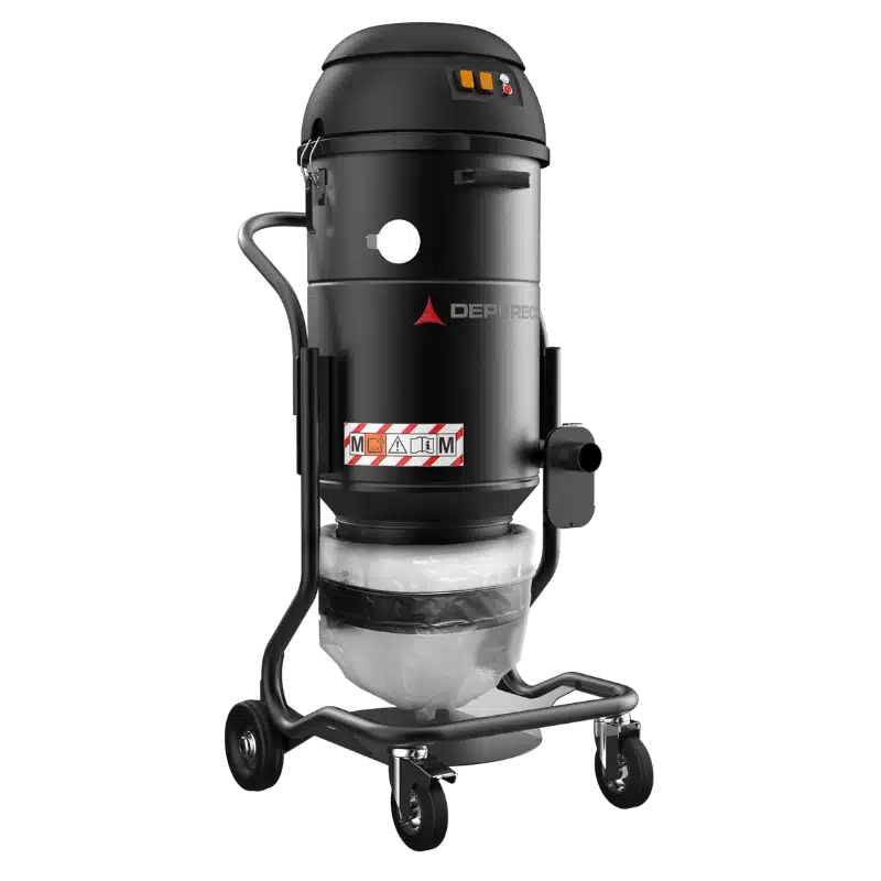 The XM35 Floor Preparation is a dust extractor from the Depureco line that has been designed for the extraction of floor sanding dust. The vacuum cleaner can be connected to the sanding machine to vacuum directly the dust generated, ensuring air quality and the health of the operator. Inside the suction chamber, there is a conical cartridge filter with a large filtering surface (35,000 cm2), surrounded by a metal cylinder, excellent for stopping concrete dust while protecting the filter. This unit features special oversized rubber wheels to provide unmatched ease of movement. The ease of movement is also accentuated by the practical telescopic system that allows the machine to be compacted, reducing its size, to facilitate transport. The vacuum cleaner can be equipped with a 45 Lt painted steel container or with a practical Longopac system with an endless bag.