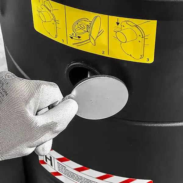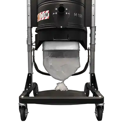 The material is collected inside a sturdy plastic bag called Longopac® that is 20 m long. The sack is rolled below the chamber and is adaptable to any need. The operator, once the sack is filled, can close it above the vacuumed material that has automatically fallen inside, seal it, cut the sack segment with the debris, and dispose of it safely, with no contact between operator and material.